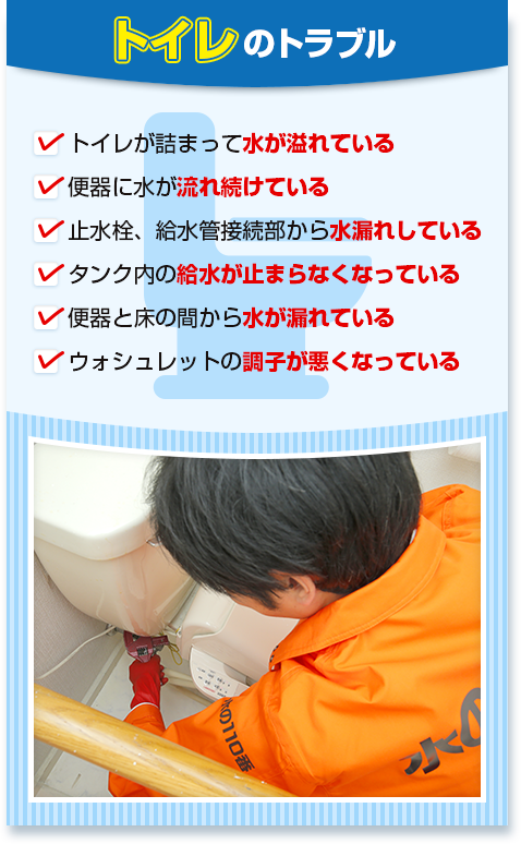 神戸市のトイレつまり・水漏れ、専門技術者が最先端技術で対応。神戸市内のあらゆる水道トラブルに、最新鋭の機器と豊富な経験で解決します。